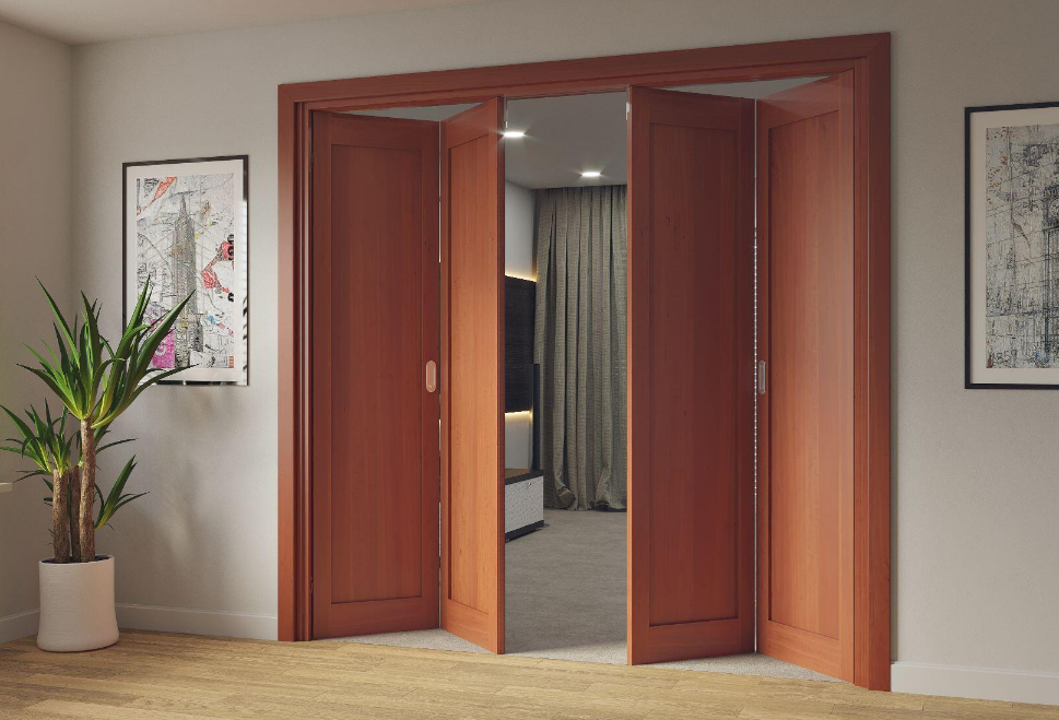 The bifold door, or accordion door, can be folded one panel against the other. This type of door is often used to separate rooms, such as a patio and an inner room. In spite of this, a bifold door can still make a lovely addition as an interior sliding door. This interior door design can also be applied to bedroom doors or closet doors. It is a much more space-saving option than an opening door, ideal for small roodms and houses such as apartments, flats, and studios.
